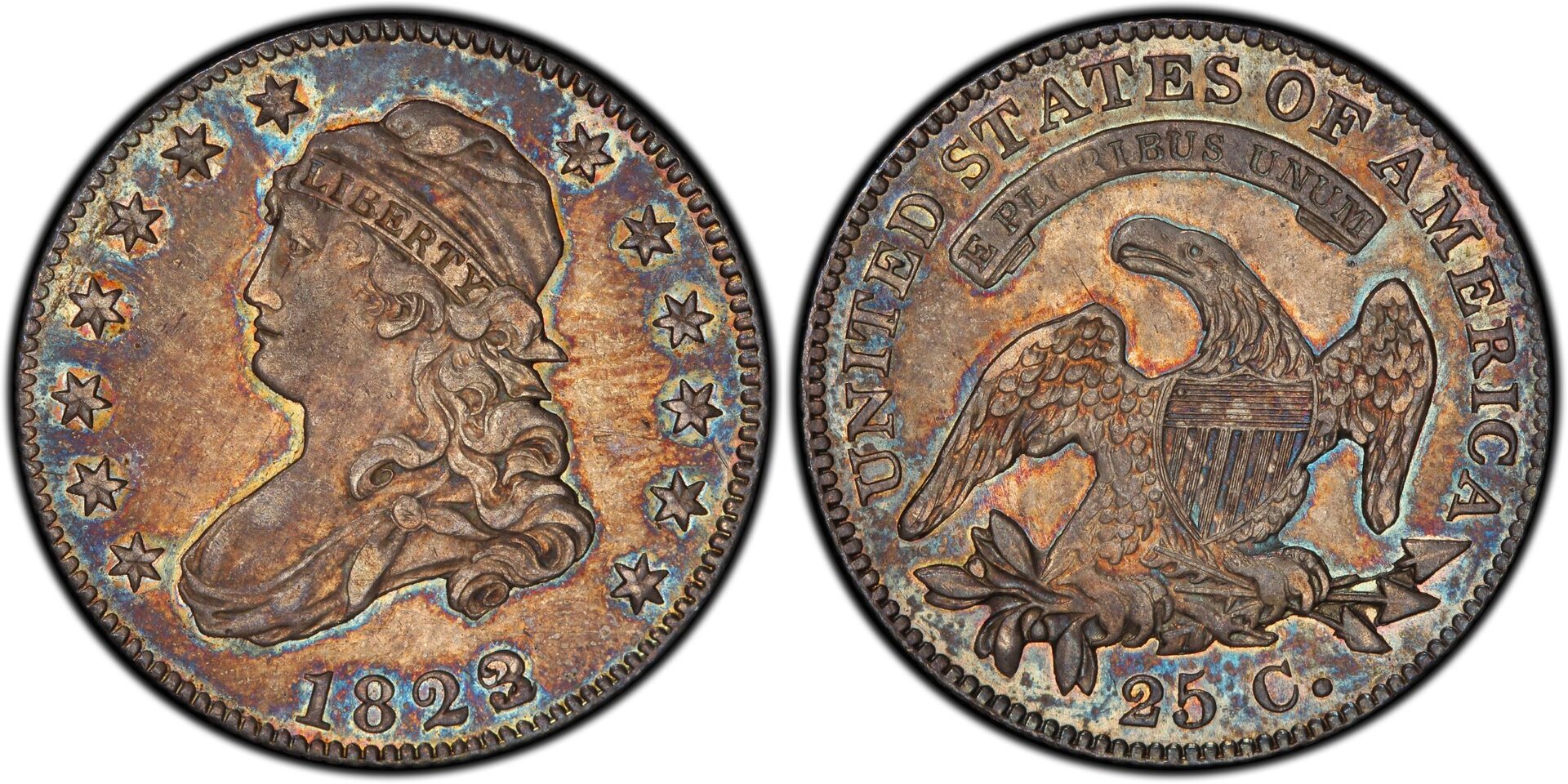 Case in point, a very rare quarter from the 1820s that is a born legend, due to its rarity and a special error that haunts the date printed on each coin. You see, every single 1823 "capped bust" quarter is overdated — meaning one year has been printed right on top of another. This defect, along with the coin's low mintage, means the 1823/2 Capped Bust quarter has always been a rare specimen. This elite status has also given the coin an auction history that might inspire even the most casual of collectors to become special coin collecting detectives.